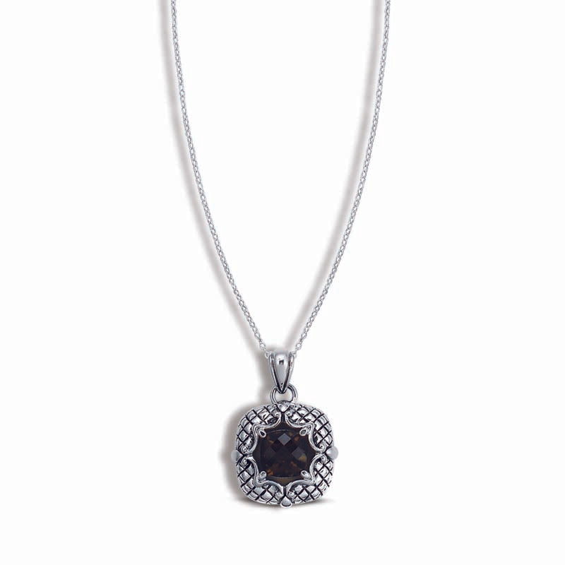 STERLING SILVER PENDANT NECKLACE WITH SMOKY QUARTZ