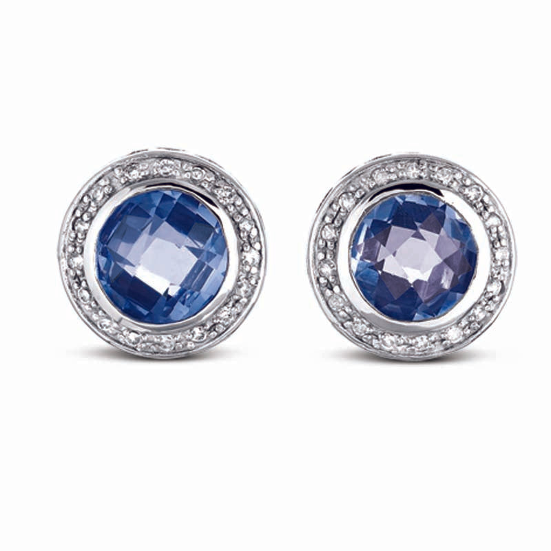 STERLING SILVER ROUND EARRINGS WITH BLUE CZ STONE
