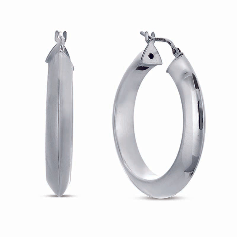 A must for any occasion,medium sized high polished sterling silver hoop earrings.Sure to never go out of style.