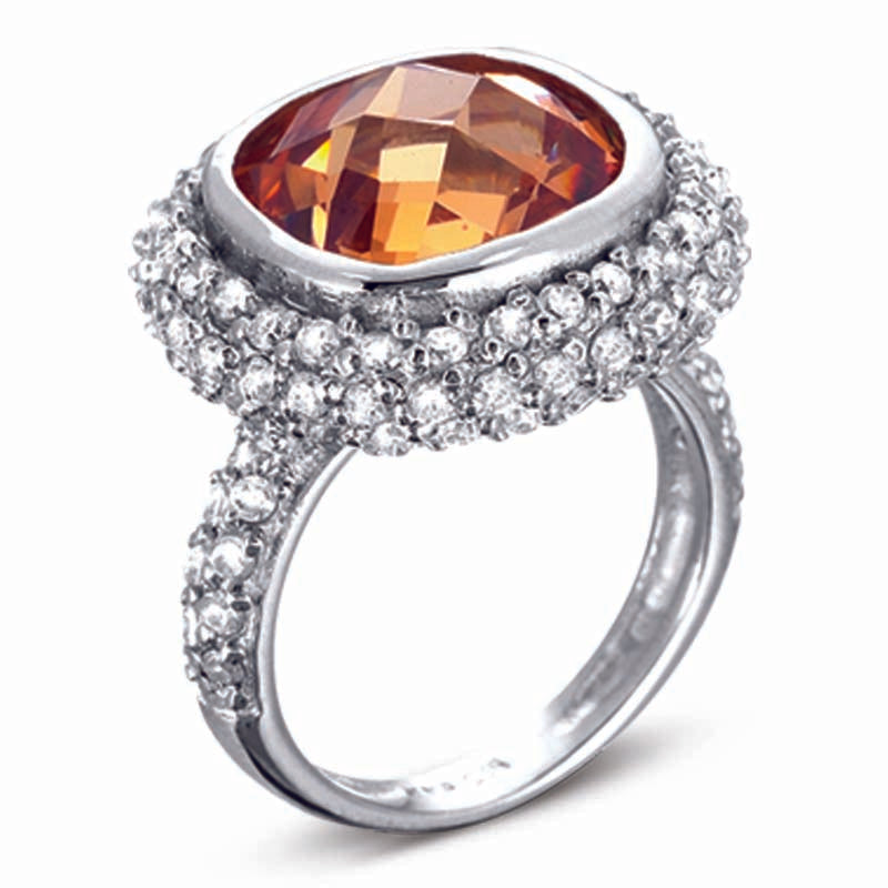 A wow piece! Stunning sterling silver ring with square cubic zirconia champagne center and genuine cz stones. Available in sizes 5-9.