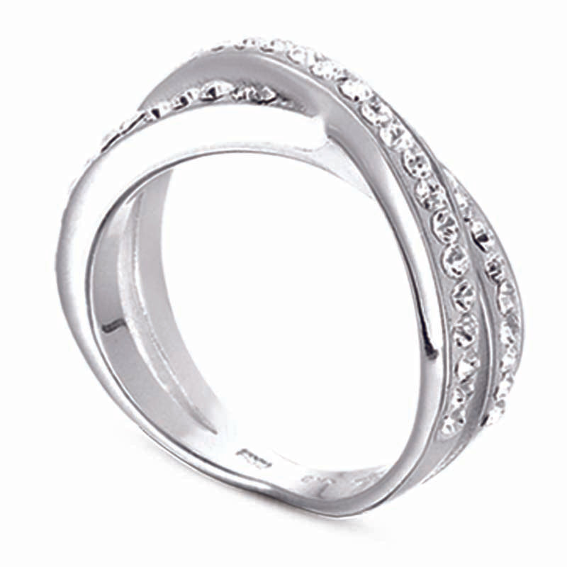 Two interlocking layers of crystals are set in this beautiful sterling silver ring.