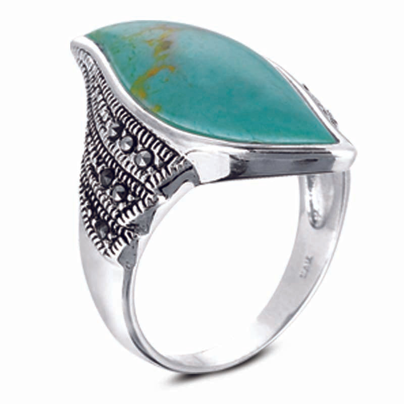 STERLING SILVER RING WITH TURQUOISE AND MARCASITES