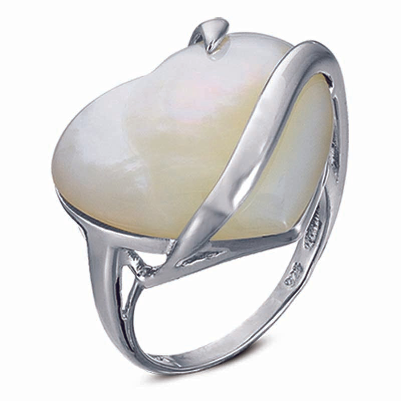 A heart shaped mother of pearl is embraced by this artfully designed sterling silver ring. Available in sizes 5-9.