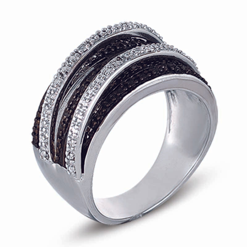 Stunning and stylish,this sterling silver caviar inspired ring features a smooth band set with clear and black cubic zirconia stones.Available in sizes 5-9.