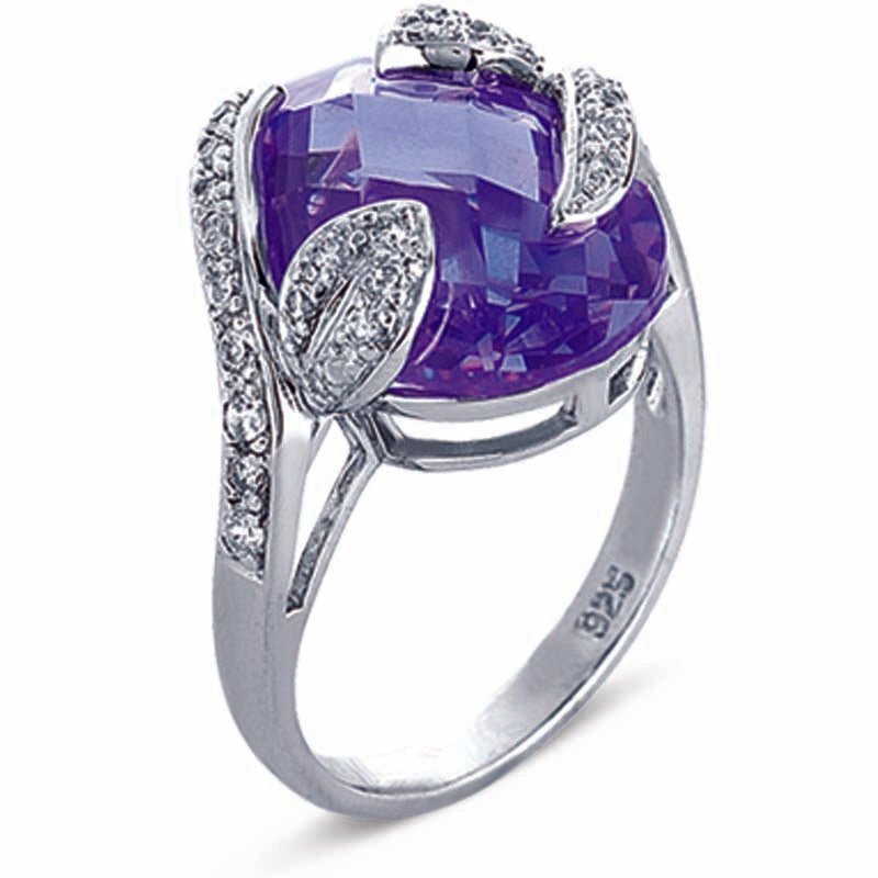 This sterling silver ring with a large lavender crystal center and clear cubic zirconia stones is as tranquil as can be. Available in sizes 5-9.